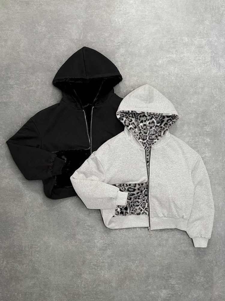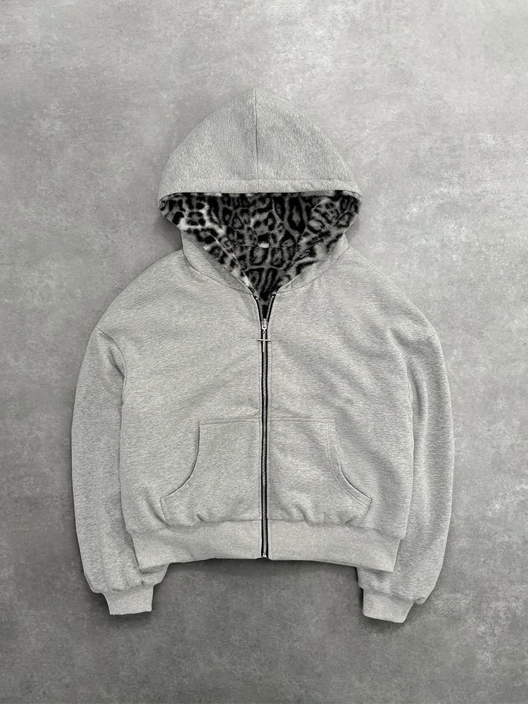 Reversible Design: Two-sided wearable hoodie with contrasting leopard print and solid color options